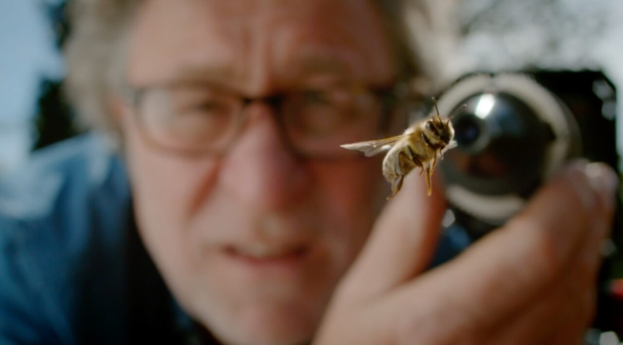 Chosen to open the 40th anniversary of the Nature series on PBS, this film is about a veteran wildlife cameraman who is bee obsessed. Seeking refuge from the pandemic in a small city garden, he is filming the wild bees that live there with mind-blowing results.  From giant bumblebees to scissor bees the size of a mosquito, he has seen over 60 species of bee. But more importantly, he is developing a close relationship with an individual bee he follows through its entire life.